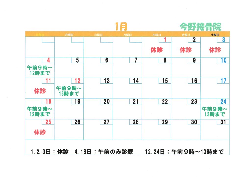 ・1月12日(月・成人の日)は午前の診療は9時~13時まで